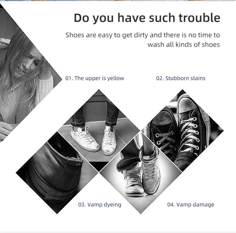 Formulated to be safe. non-acidic and non-alkaline. Will not cause damage to shoes. but also more care for the health of hands: avoid alkaline washing. effectively avoid the textile upper color loss. deformation. aging and other problems.