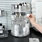 360 degree rotating makeup storage device: The makeup storage device and storage device can rotate infinitely 360 degrees. With just one revolution, you can find the cosmetics you want in a few seconds, saving a lot of time on makeup before going out. It rotates smoothly and quietly, making it very convenient to use